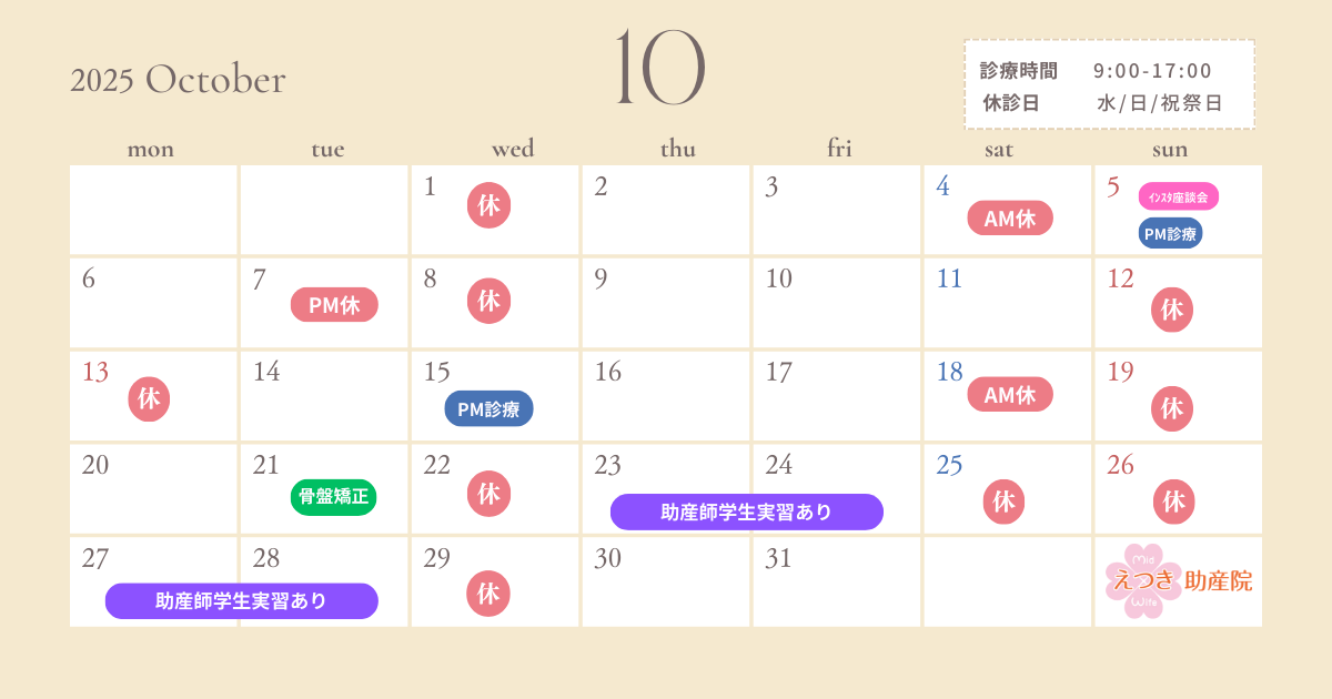 #えつき助産院 #お知らせ #診療カレンダー #助産師学生実習 #インスタ座談会 #夜間授乳 #夜間断乳