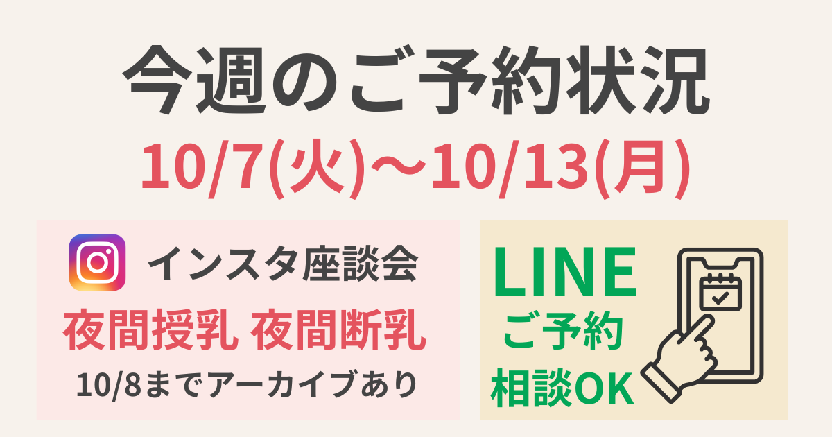#今週のご予約状況#お知らせ#夜間授乳#夜間断乳#インスタ座談会