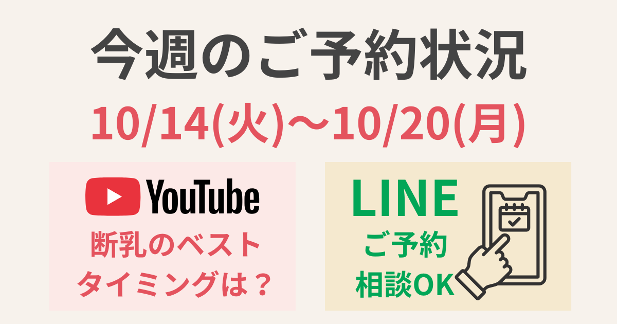 毎週火曜恒例の【ご予約状況】と、ママに役立つ情報をお届けします!
