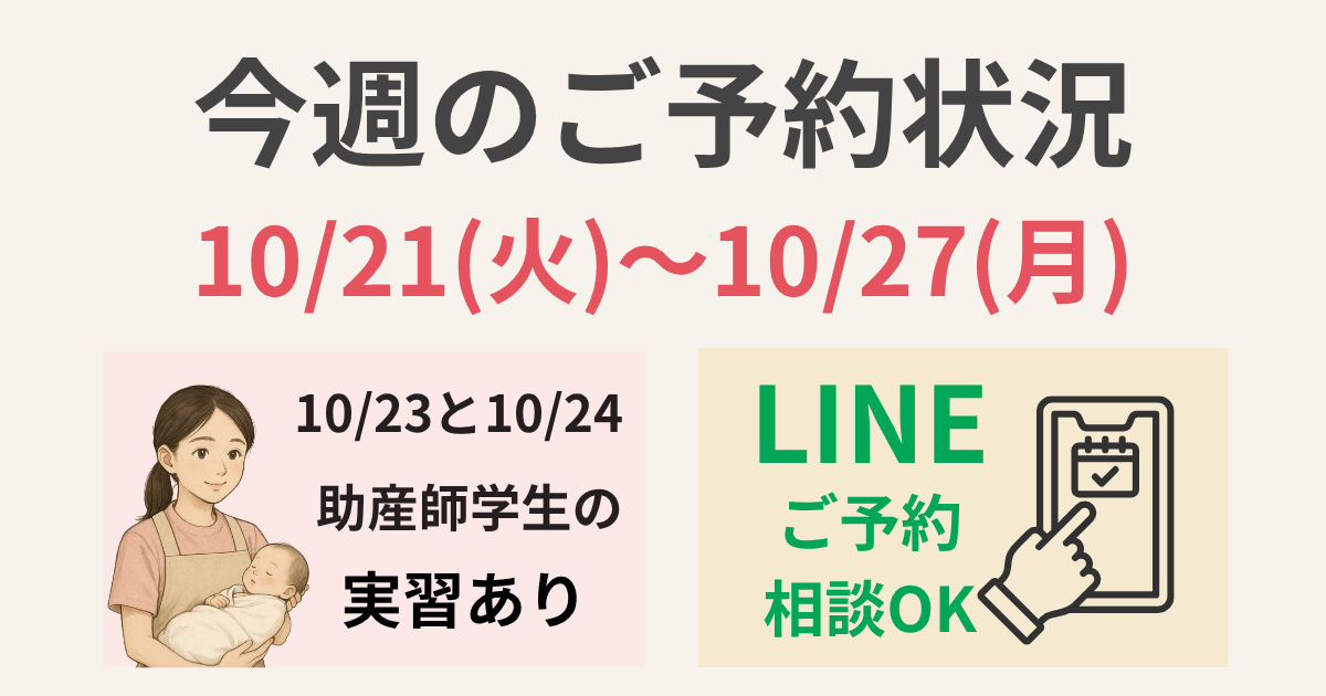 【10/21(火)〜10/27(月)】今週のご予約状況のお知らせ