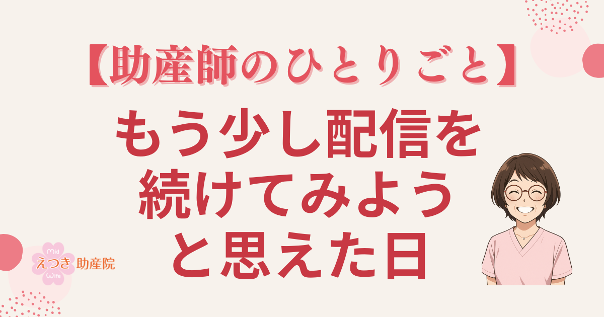 【助産師のひとりごと】「もう少し続けてみよう」と思えた日